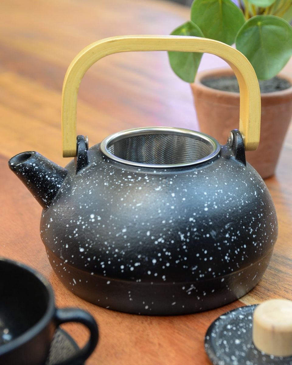 Perfect for keeping loose-leaf tea warmer for longer. The ‘Ginga’ cast-iron Japanese-style teapot offers a traditional and understated elegance thanks to its bold black finish and clean bamboo-style handle. Ideal for serving your tea at an optimal temperature.