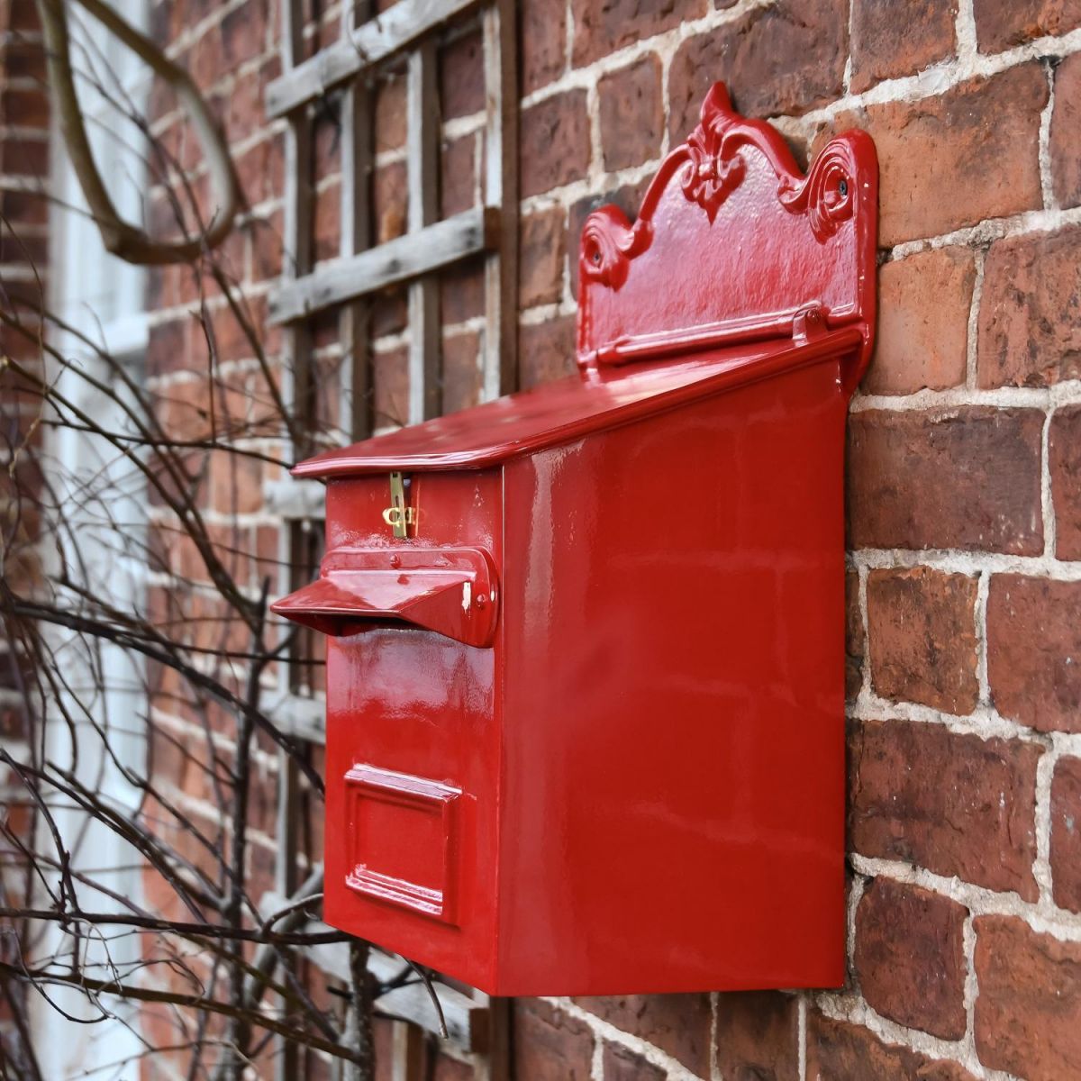 Finished in a hand painted vibrant sun-drenches red finish, this wall mounted post box is abundant in sophistication and style. Crafted from a combination of high-quality aluminium and cast iron, this post and parcel allows for letters and small parcels to be left safe and secure. Complete with liftable lid, lockable latch and hooded aperture, this post box features pre-drilled holes within the decorative backplate and the back of the post box allowing for easy installation to any wall, pillar, or post. An ideal way to add style, colour, and practicality to the exterior of your home.