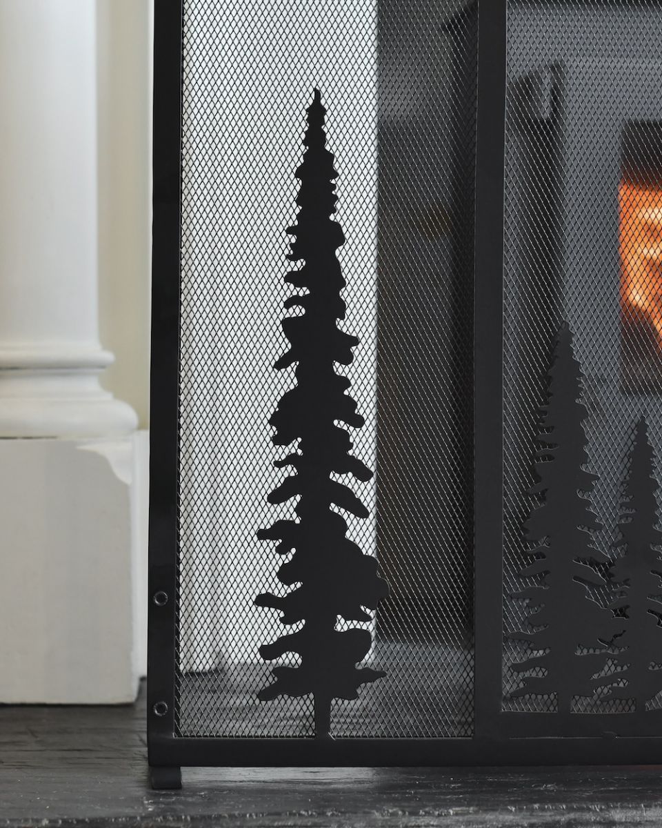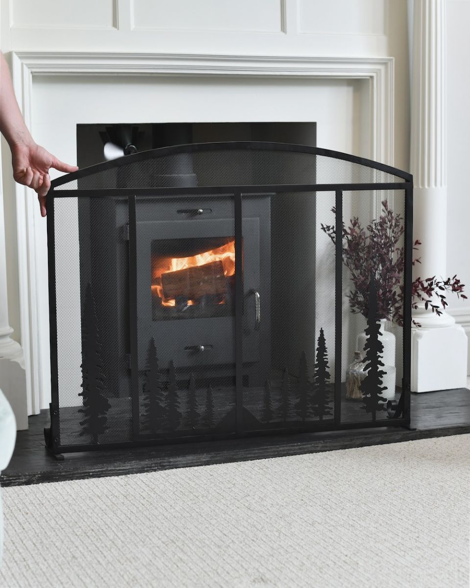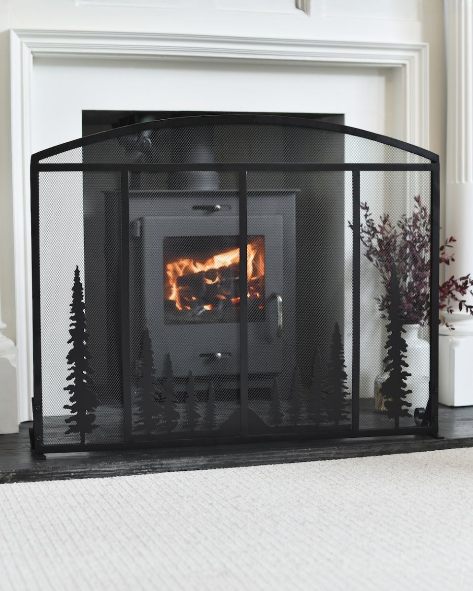 Crafted from high-quality iron and finished in a sleek midnight black, this ornate fire guard is the perfect way to add some style to your hearth. This spark guard features a silhouette of a forest along a side design, allowing it to cover your fireplace with ease. Designed with integral fine mesh panelling, this fire surround will protect you and your family from any loose debris or sparks throughout fireplace use. A must-have for any interior; from modern to traditional spaces.