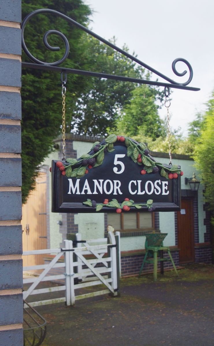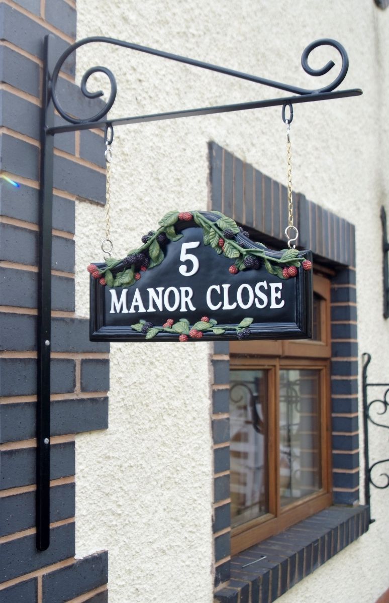 The beautifully hand painted brambles of this design have been draped perfectly over the arch of the plaque, much like they would your own front door.
