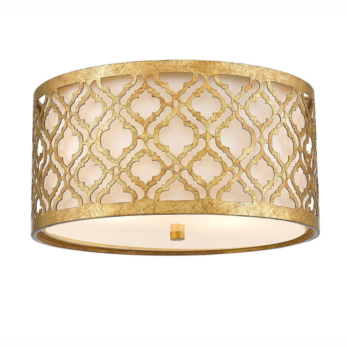 Our beautiful 'Hanley' Distressed Gold Flush Ceiling Light is the perfect addition to any home. Ornately crafted from steel and complete with a linen diffuser, it would compliment any colour scheme.