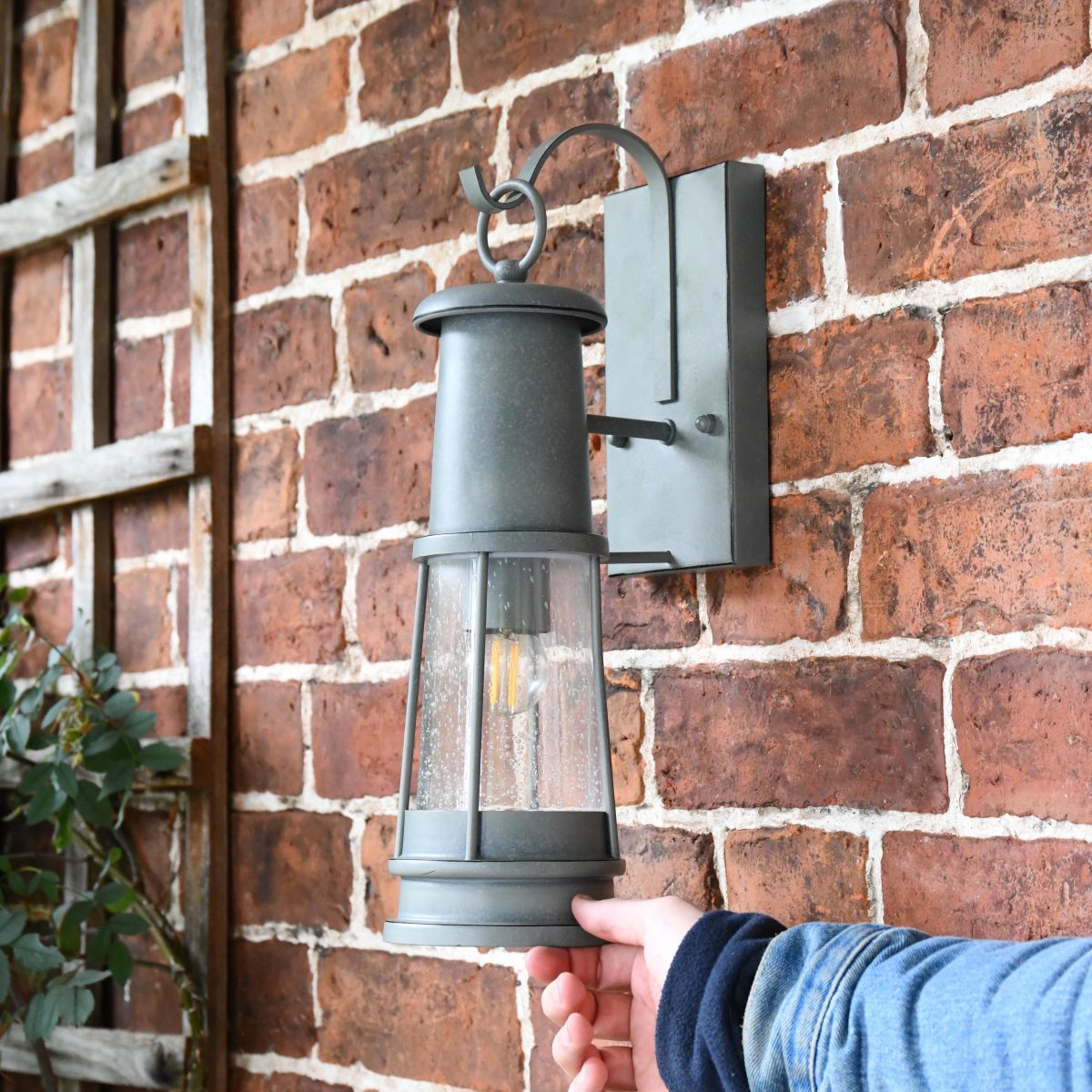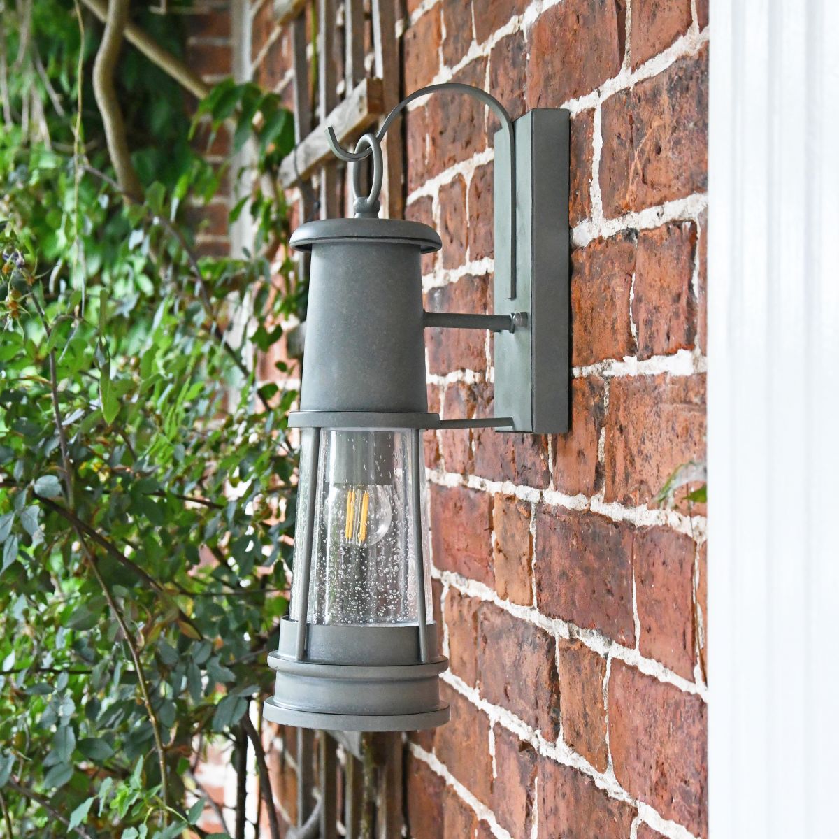 Finished in a deep cobblestone grey, this nautical inspired design remains charmingly faithful to the harbourside lanterns that have lined our docks and bays for decades whilst providing a unique modern twist. This wall light is traditional in shape with an elegant tapered top and seeded glass midsection. The top-mounted bracket and extending arm are delightfully simple in detail, allowing the authenticity of the piece to shine. Perfect for mounting above a door or entryway, this lantern comes complete with a built-in bulb holder for maximum downward light projection.