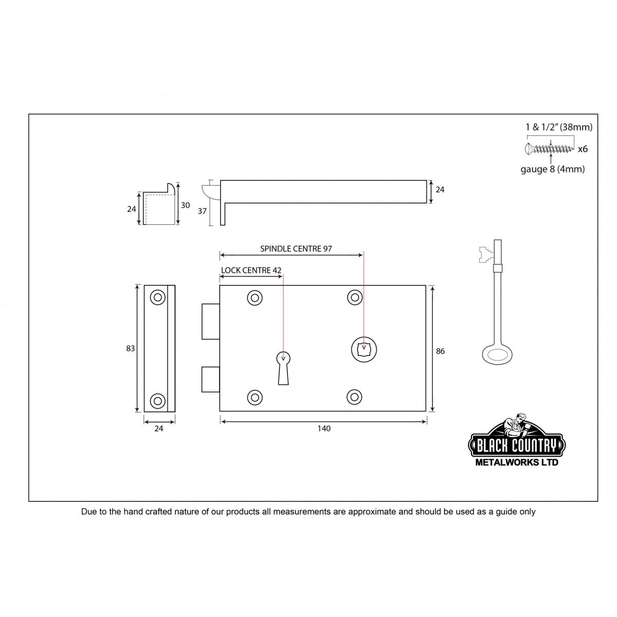 Robust Victorian style iron rim lock suitable for internal or external use on doors up to 65mm (2.56"). Powder coated to protect the characterful iron patina against high moisture environments. This compact rim lock is durable and built to last with solid brass internal parts. Set comes with two solid brass keys.