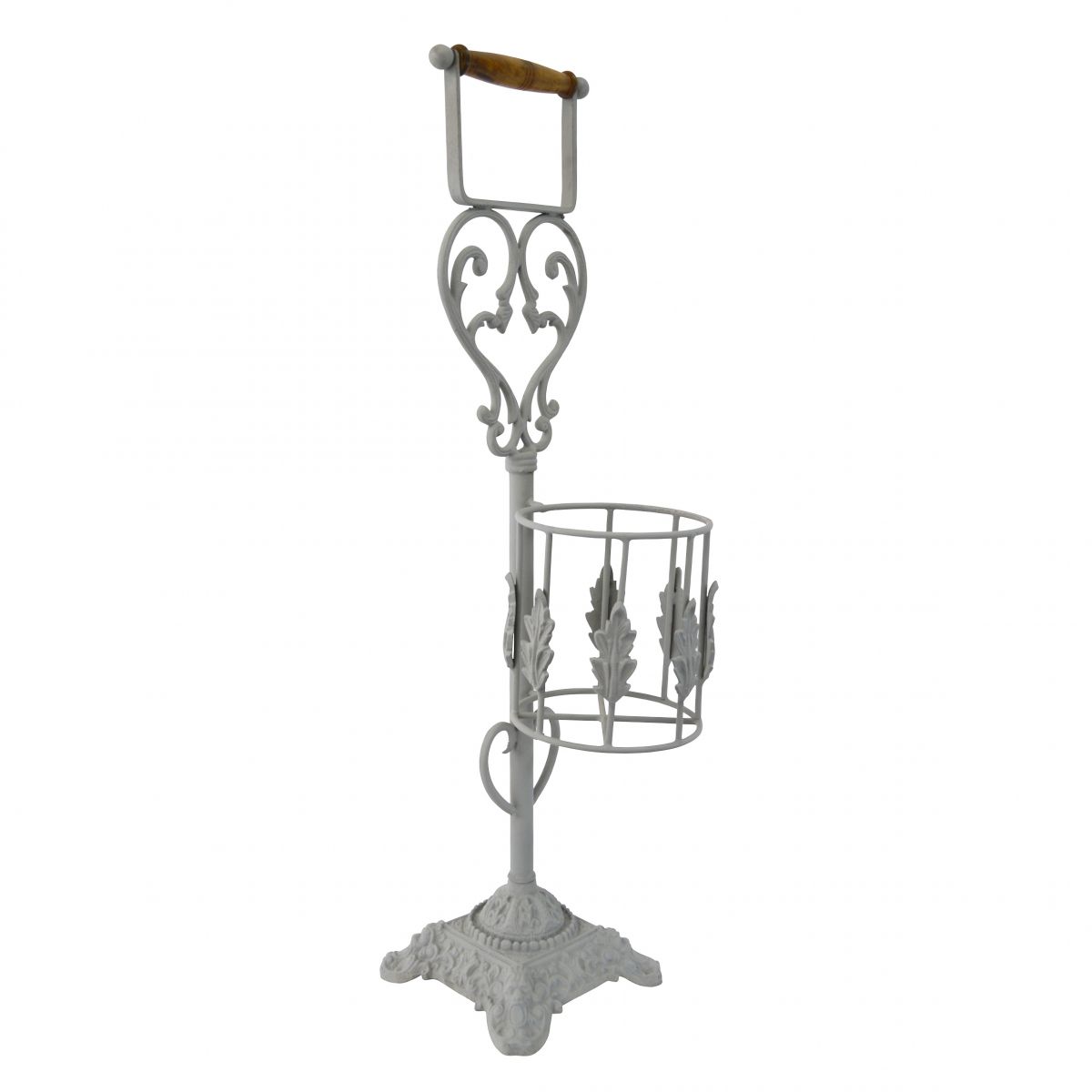 Featuring a scrolled heart design, this free standing toilet roll holder would make an excellent addition to your bathroom. The holder has been finished in a warm grey and is available in antique cream and rustic. Made from steel and complete with a wooden toilet roll holder.