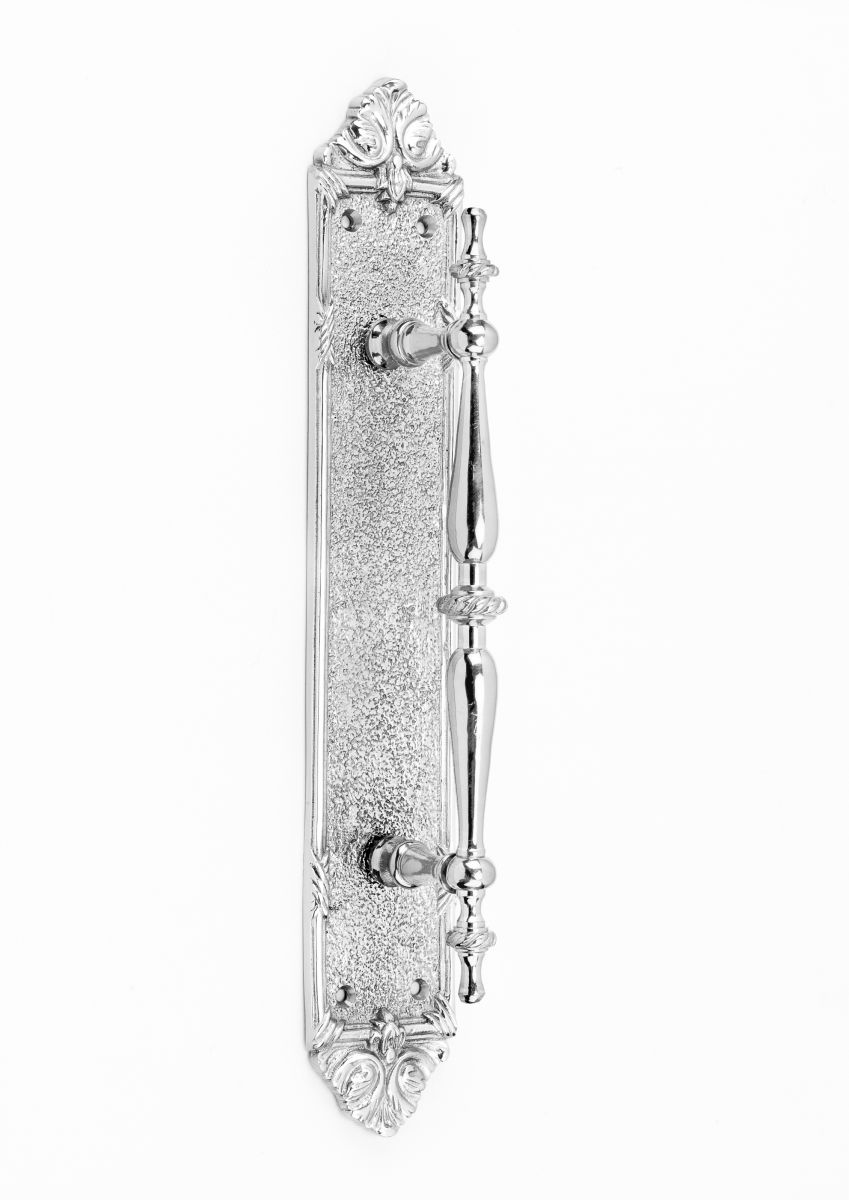 This superb Pull Handle has an ornate top and bottom foliage design, and a lovely textured back plate.