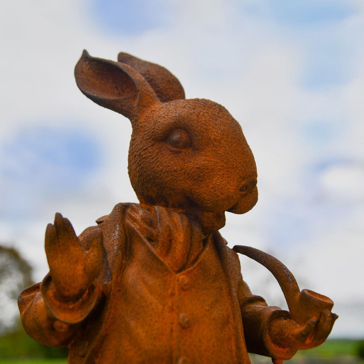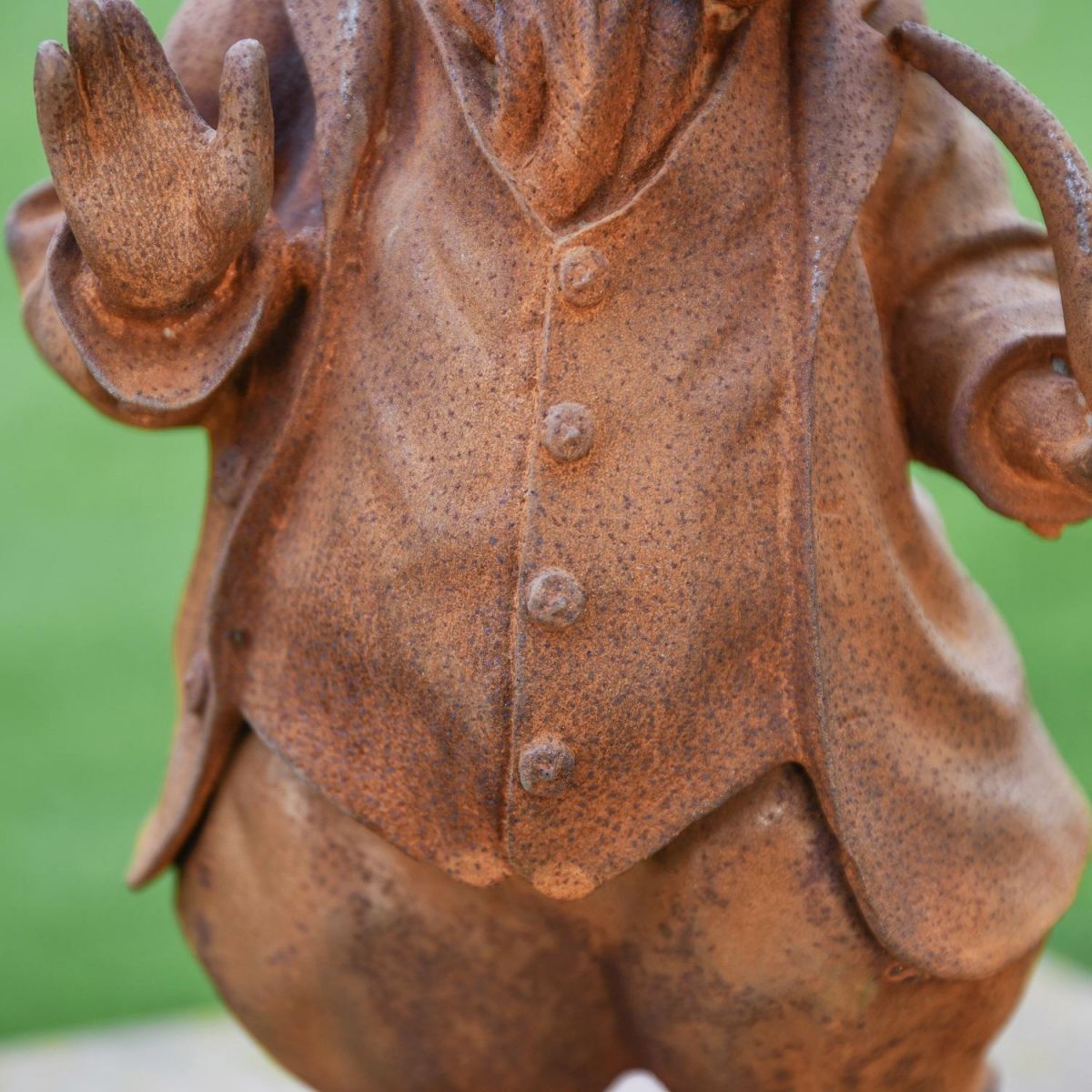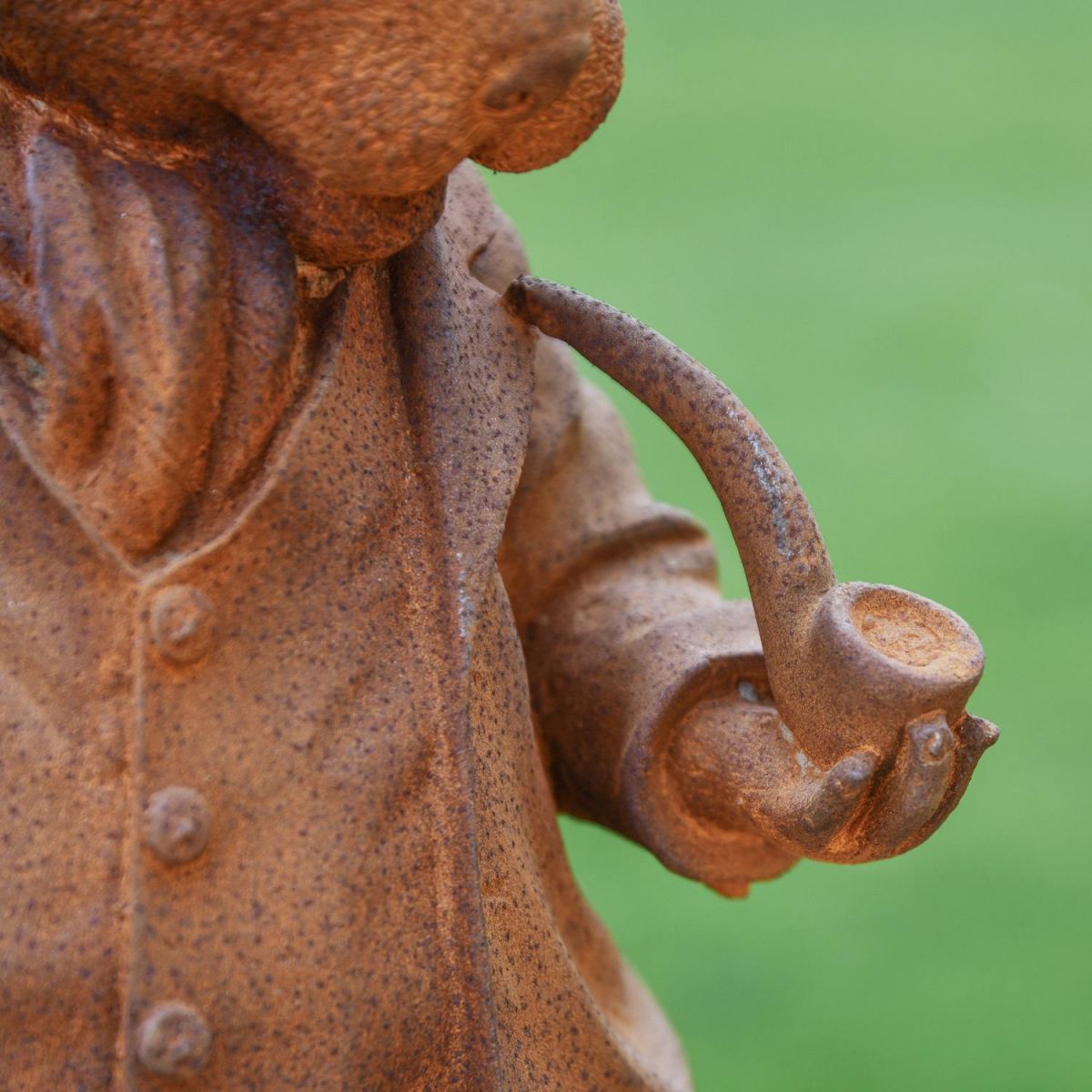 Designed to be either used as a singular piece or as part of a collection, this garden sculpture depicts a hare with a pipe in hand. Crafted from cast iron and left to naturally age when exposed to the elements, this sculpture is highly detailed throughout, including the fur detailing across the face and hands, all the way to the pleats on this sculpture’s trousers. Part of the animal character collection, this sculpture adds character and charm to any outdoor space.