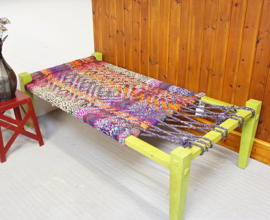 Taking inspiration from Indian culture, this fantastically unique bed is authentic in both design and style. Families in Indian villages will sleep and rest on frames of wood which are supported by a woven system of cloth or thin cords. This 'Baamaseen' bed has been hand crafted from timber and woven cloth, which has been platted and interlaced using vibrant cloths to create a stunning and unique pattern. A simply charming bed or a piece of furniture to rest on, which will steal the show in any room.