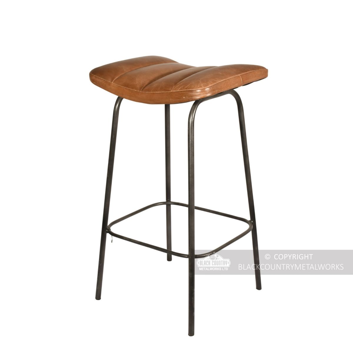 Crafted using the highest quality of leather and iron, this wonderful bar stool is ideal for adding the final touches in any kitchen, commerical bar or office setting. The metal stool frame has been crafted using gun metal and finished in a black finish, which complements the natural tones of the buffalo leather. The padded seat cushion comprises of four ribbed panels for style and much needed comfort, even after continious sitting.