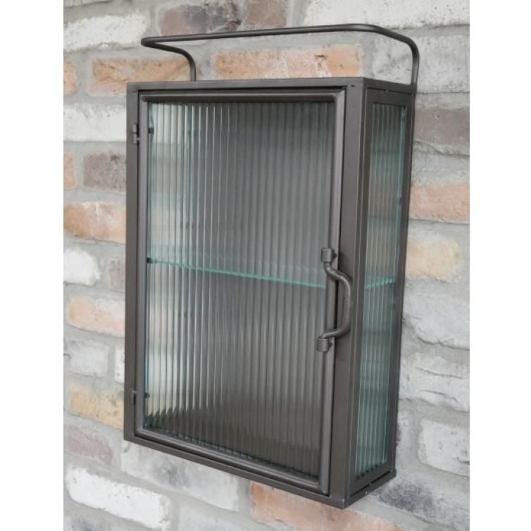 Crafted from high quality steel and finished with a ribbed glass finish, this industrial wall unit features one door, perfect for hiding household nik-naks and toiletries. Designed with a single barrier on top of the wall unit, it means that items can also be placed safe and secure. A wonderful addition to any bathroom, living space or dining room.
