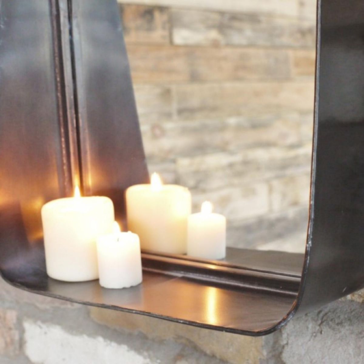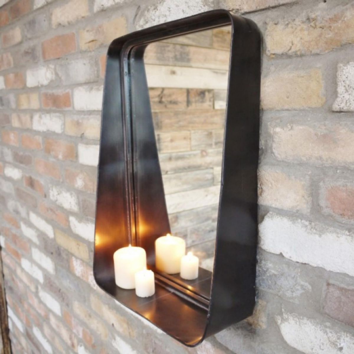 This industrial styled metal mirror is stylish and sophisticated and with a small shelf at the bottom, it makes for a practical storage solution too. Display candles or other small ornaments to achieve a homely look. Its sleek design means it will blend with any interior décor.
