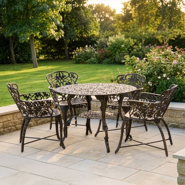 Aluminium requires little maintenance because it does not rust or corrode like other metals. However, if left for an extended period amount of time, particularly outdoors dirt may build up on the surface of the metal. To avoid this, ensure that your set is wiped clean from time to time. Mild soap and detergents can also be used but please be wary of any paint finishes, as these may not be protected against chemicals found within these cleaning products. For more advice on how to care for your cast aluminium furniture, please click here. (Note: The 10-year guarantee covers the structural integrity of the metalwork, excluding cosmetic paintwork/finish, which will age naturally over time).