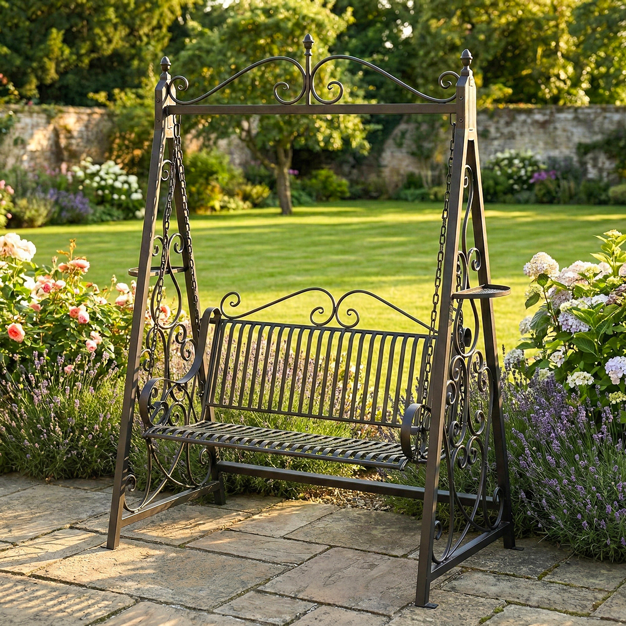 Surround yourself in nature and take a moment to unwind with our intricate swing bench. With it's ornate design and classic champagne finish, this swing bench is a luxurious addition to any outdoor space. Spending time in nature has a number of mental and physical health benefits, including; stress reduction, enhanced cognitive function and improved sleep.
