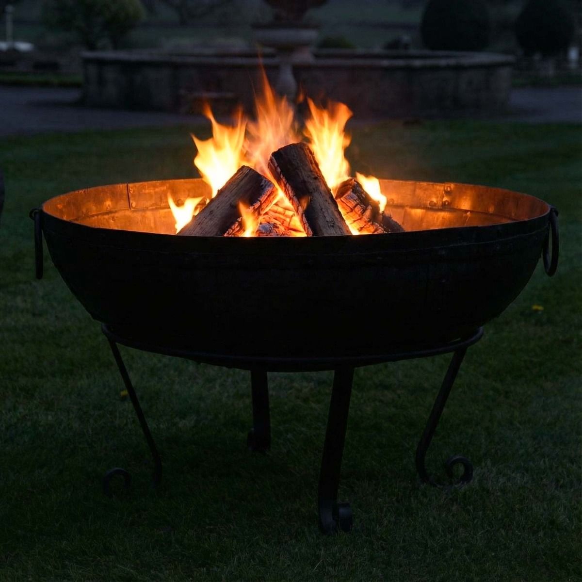 Handcrafted from high-quality iron and finished in a natural black iron effect, this unique design takes direct inspiration from authentic Kadai bowls originating from India. Beautifully detailed throughout, this deep fire bowl features two integral side handles for easy movement when not in use and riveted detailing across its main body. This wood burner comes complete with its own four-legged stand to keep your surfaces from scorching and to ensure stability throughout use. Ideal for BBQs or for keeping your outdoor space well heated during the colder moments of the day, this fire bowl is a must-have for anyone who enjoys outdoor entertaining.