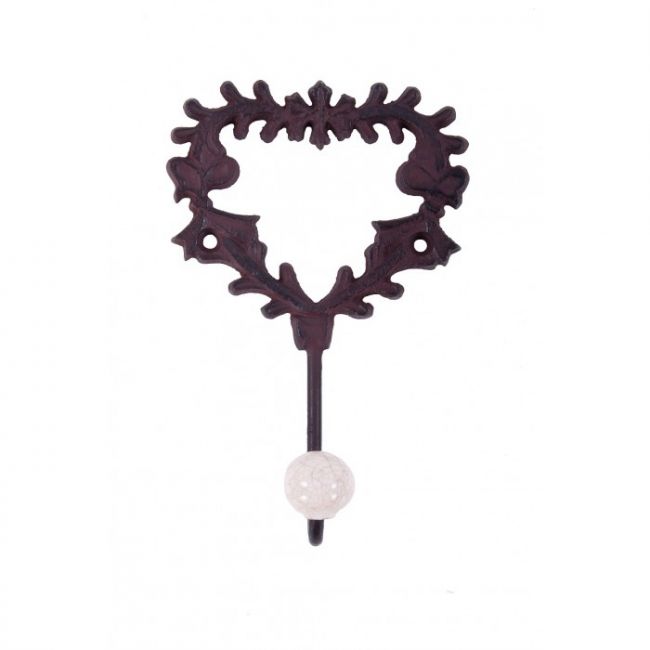 Simply timeless in design this elegant coat hook has been created from cast iron. The delightful hook is wall mountable and has been finished in a rustic brown, thought the hook is also available in an antique cream or pale storm grey. Wonderfully ornate the hook is charmingly detailed, featuring a ceramic ball finial finished in a unique crackle glaze.