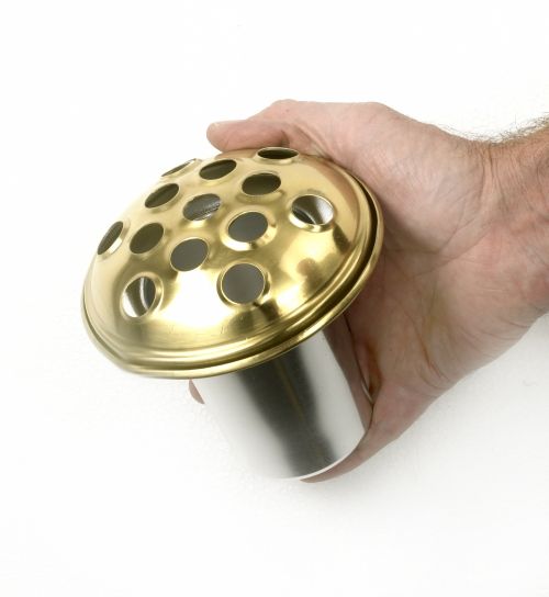 This solid brass topped aluminium flower vase is a quality product that is perfect for holding your flowers at a graveside. This piece is designed to withstand the elements and can be used alone or with one of our resin memorial stands. The smaller size of this piece is also available here here.