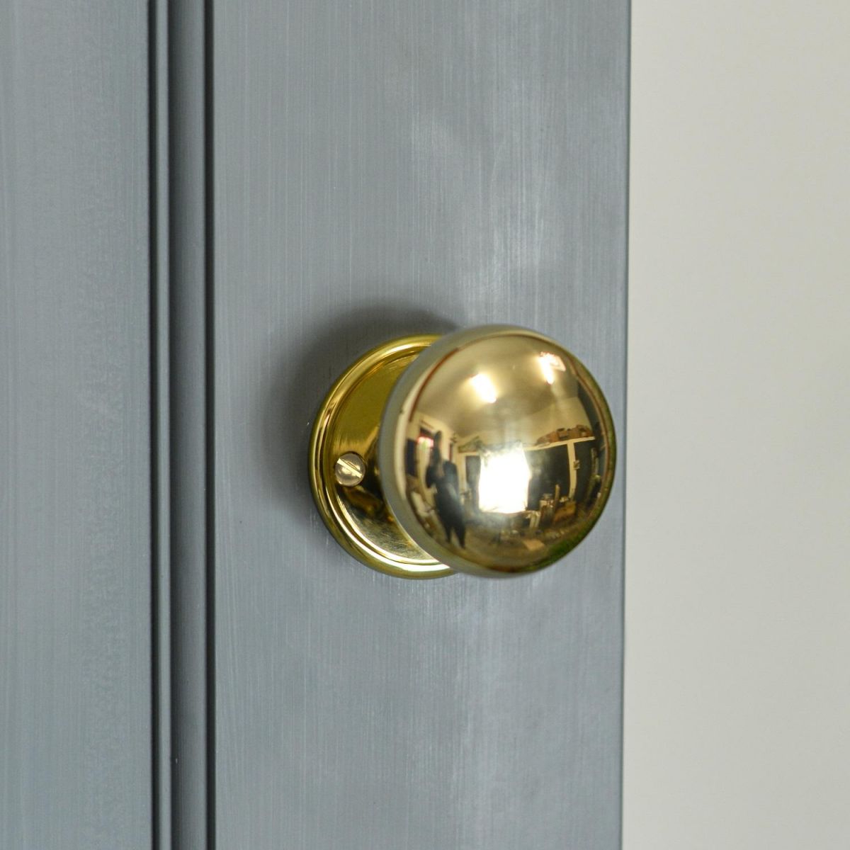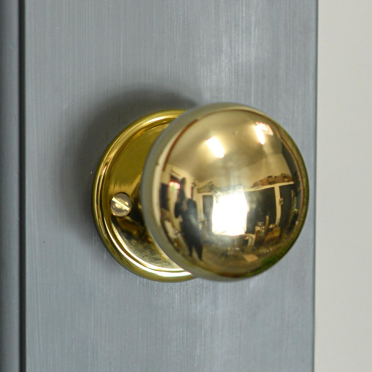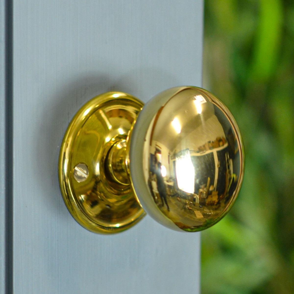 Large mushroom style door knobs, finished in a polished brass. Suitable for both Rim locks and mortice locks.