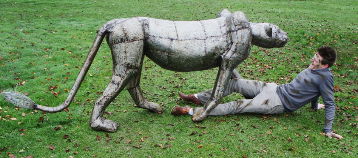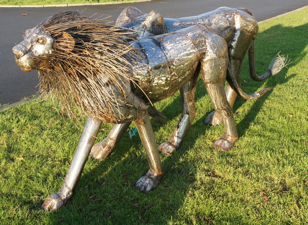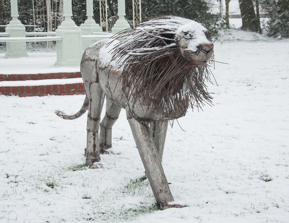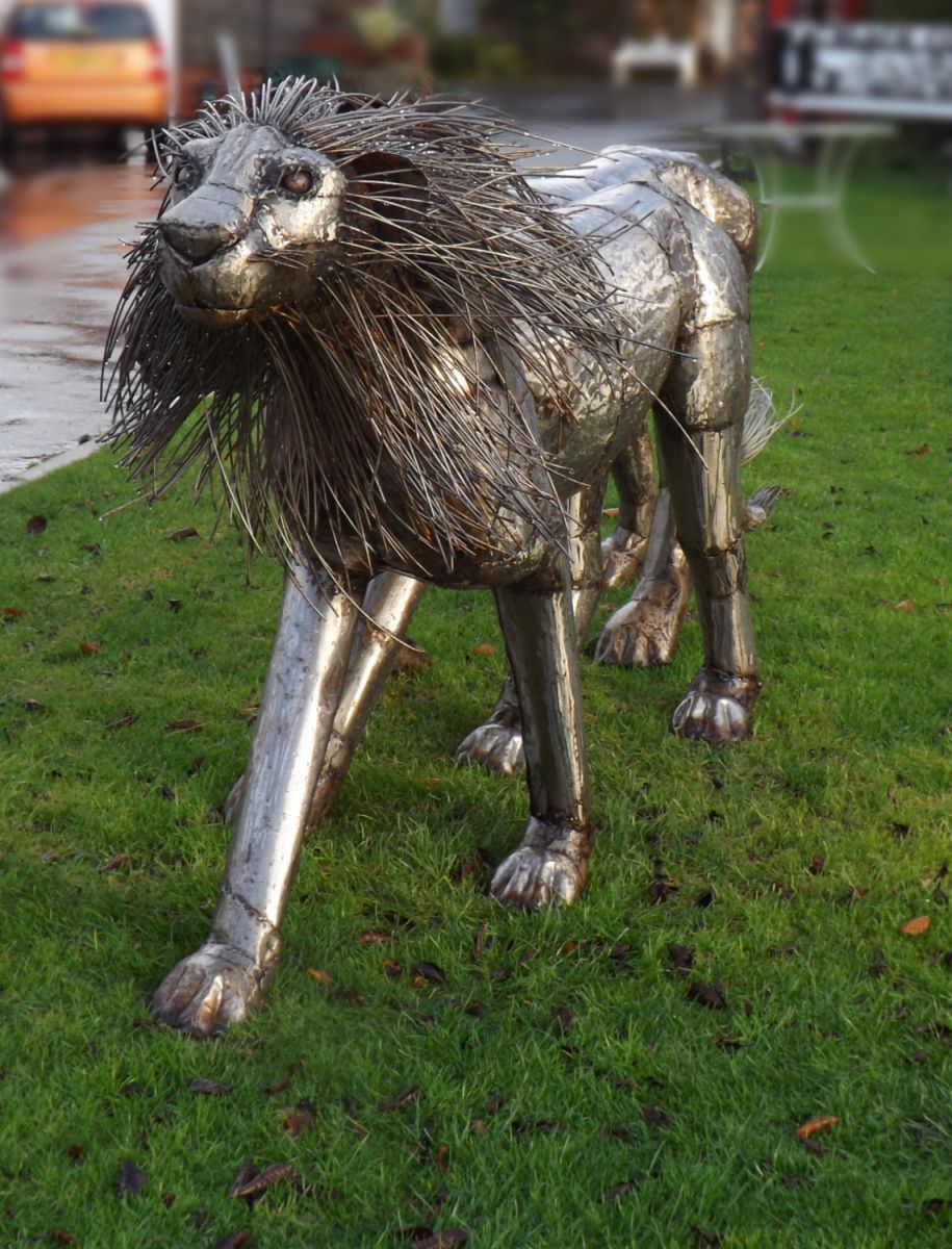 The lion also has an iron wire tail, and magnificent mane to signify his dominance. He is seen majestically prowling the Savannah of our grounds. The face of this natural hunter is simply detailed with whiskers and features, created to embody the character of such an animal.
