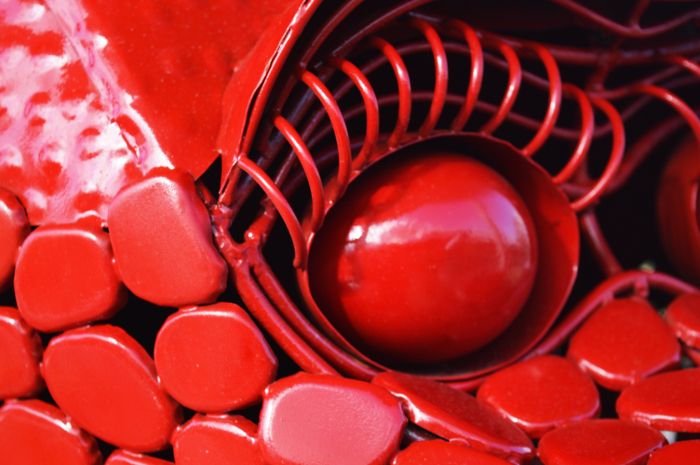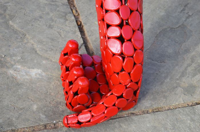 Hand made in fabricated steel, he is part sheet and part pebbled steel, and has been lacquered to create a splendid dappling effect.