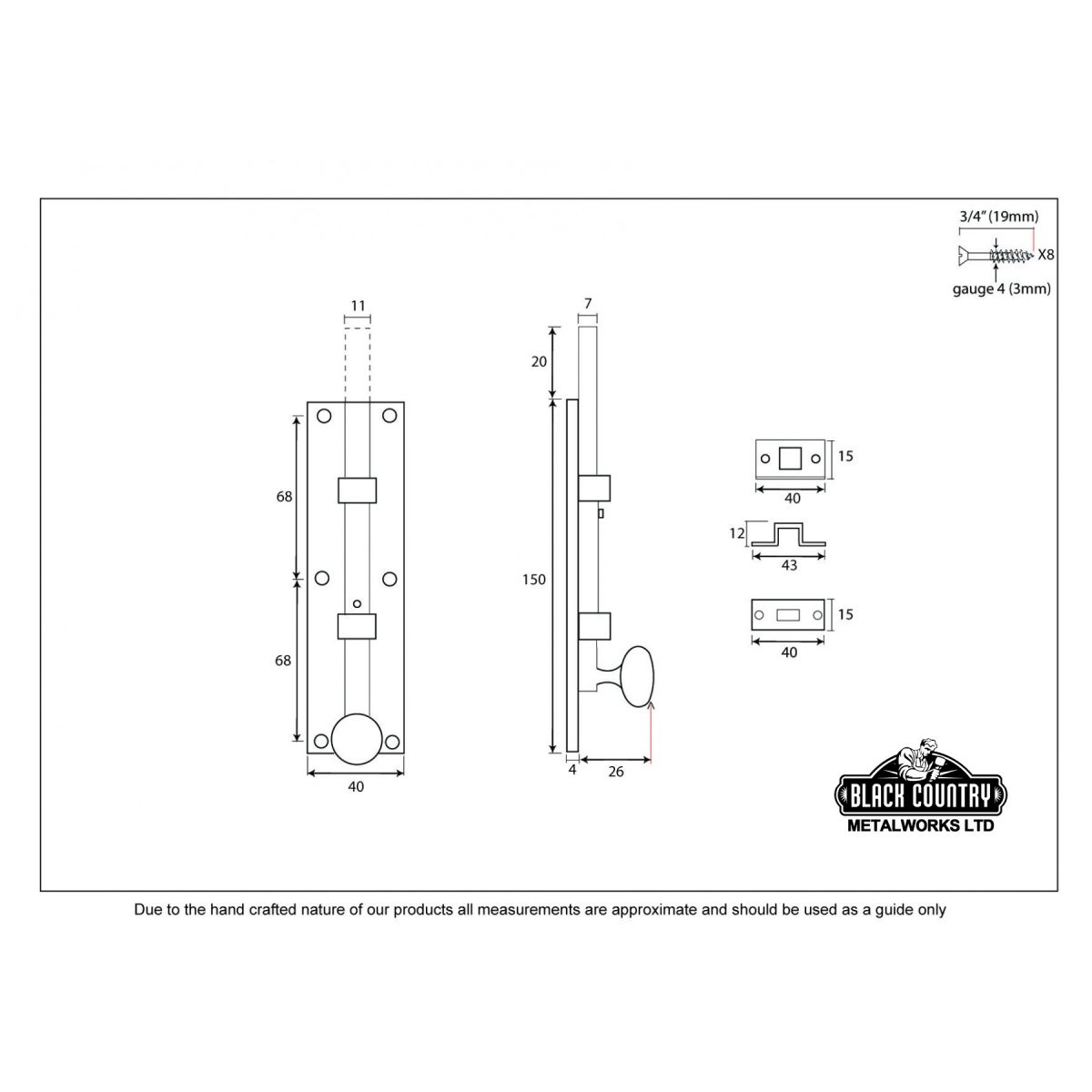 This universal straight bolt set is versatile and can be adapted to suit the needs of your project. Includes three different receiver plates: a flat plate, receiver bridge and an angled keep. Available in five distinctive finishes this set offers adaptability as well as under-stated charm and style. The longer bar is particularly suited to outdoor use in areas where increased security is necessary.