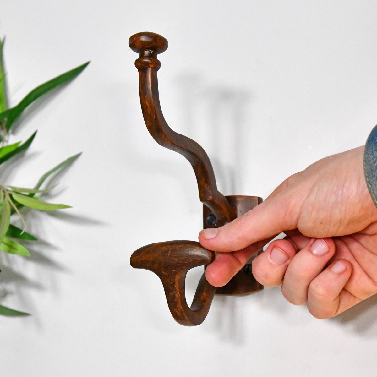 Crafted from high quality cast iron and finished in a beautiful brown finish, this two-pronged hook will look ideal when placed in a utility or hallway area. Adorning both a narrower but long hook and a smaller wider hook, this coat hook is ideal for light raincoats as it is bulky winter ones. Ideal for traditional homes, pre-drilled holes within the face of the hook allow for easy and simple installation.