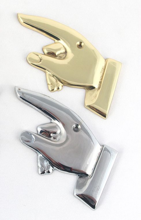 These Polished Brass Lacquer Male and Female Directional Hand plaques are also available in Bright chrome and Black Finish.
