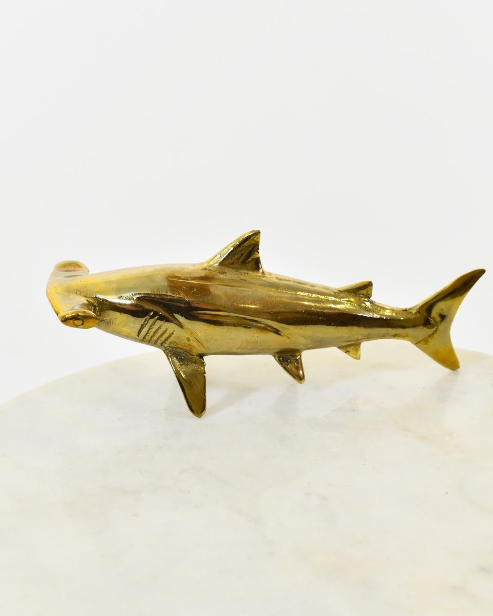‘Meridian’ the hammerhead shark ornament, is a fine example of raw ferocity and artisan luxury. Crafted from cast brass and finished in a radiant gold patina to create a powerful, luxurious aesthetic, this apex predator is a fearsome symbol worldwide.