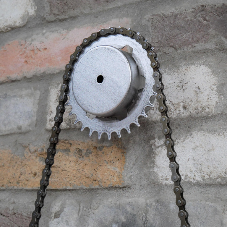 Crafted from high quality steel and finished in a painted silver, this clock features a singular bike chain which loops between two cogs for added effect. The clock face itself features a slate grey backing and white numbers along with two hands for easy reading, even at a distance. Designed to be mounted onto walls, this wall clock is a unique alternative to traditional wall clocks which would look fantastic in narrow or industrial spaces.