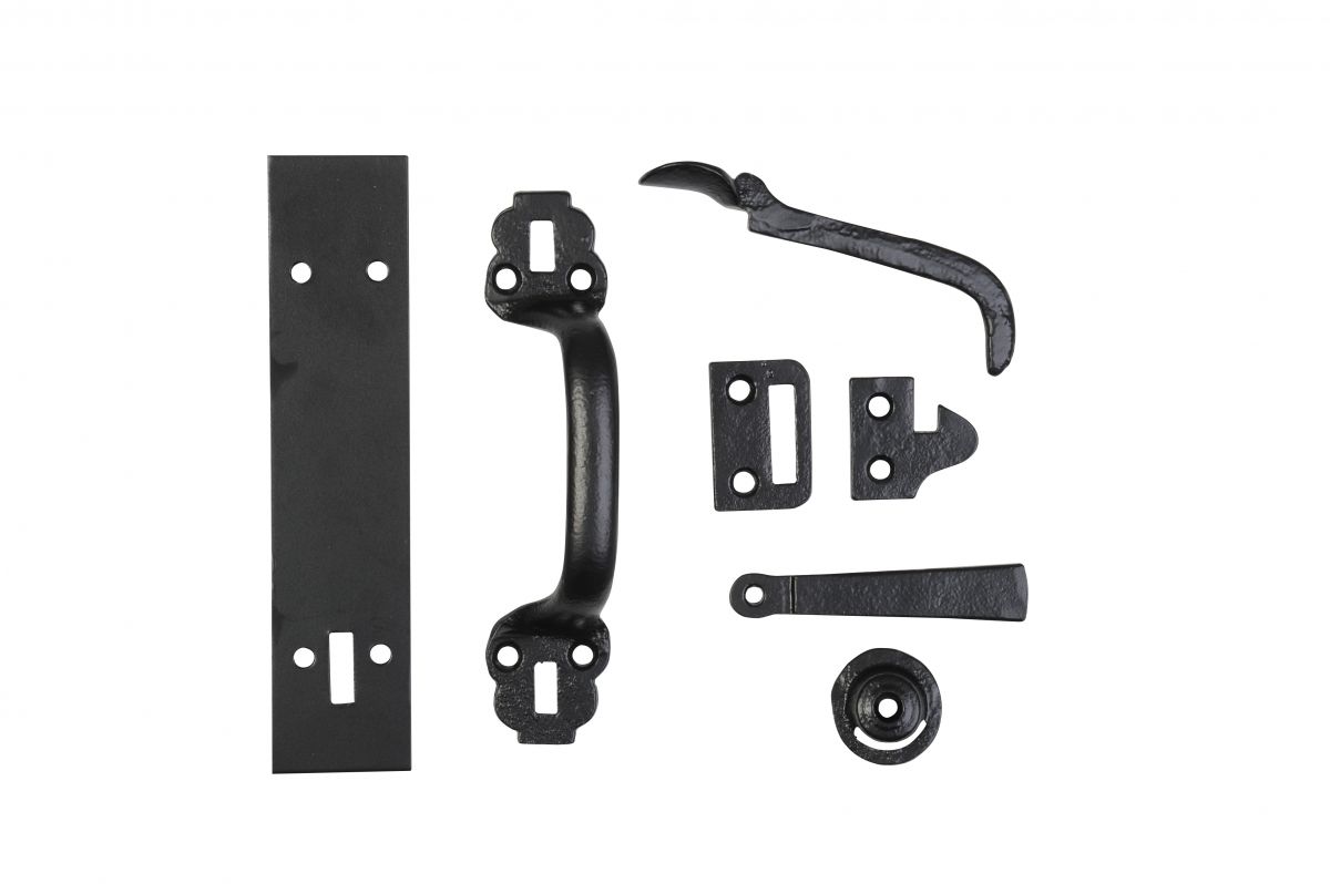 This hand crafted iron latch set is produced in the UK using traditional forging techniques. All necessary fixtures and fittings are provided for ease of installation. The smooth black iron look of this latch set will complement both period and contemporary styles as well as natural and painted woods. Highly decorative as well as offering durability and security, this latch set is suited to internal and external use. Care instructions included.