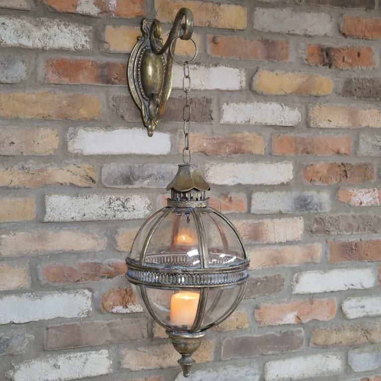 Moroccan in design, this lantern and bracket come crafted from a combination of brass and clear glass, left in natural metal finish. With a wall-mountable bracket, this lantern can be placed to your liking, to illuminate any surrounding safely and securely. Simply place a candle or battery-powered equivalent inside for instant effect.