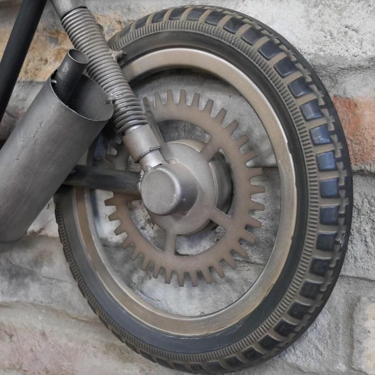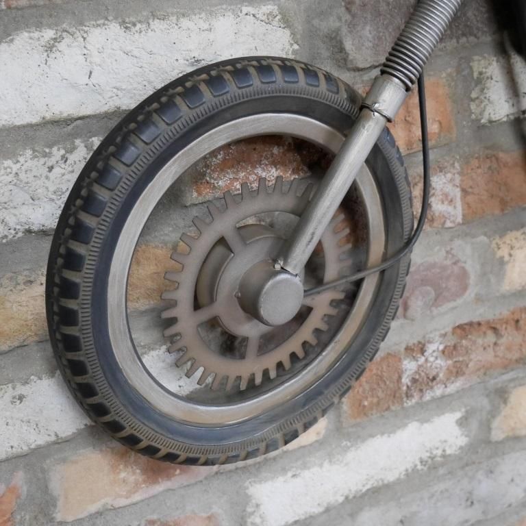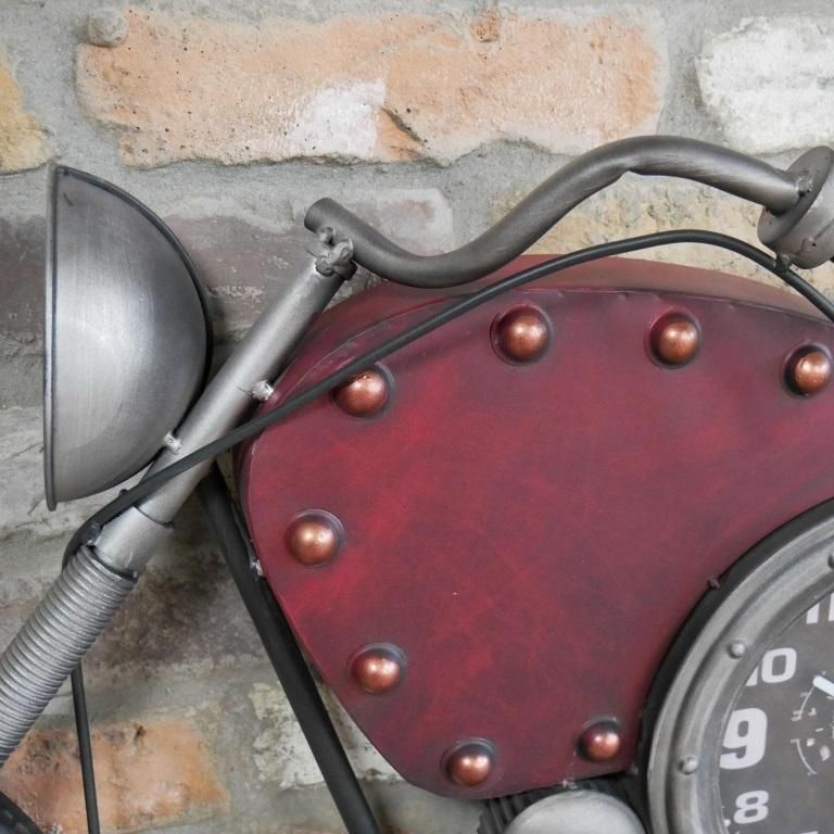 Crafted from high quality robust metal and finished in an assortment of colours, including a burnt red and silver, this clock is certainly designed for those who love motorbikes. Complete with wheels, handle bars and exhaust pipe, this motorbike features a circular clock within its centre. With large numbers and two hands it makes reading the time quick and easy. Designed to be wall mounted, this motorbike clock is ideal for placement in man sheds, garages and offices.