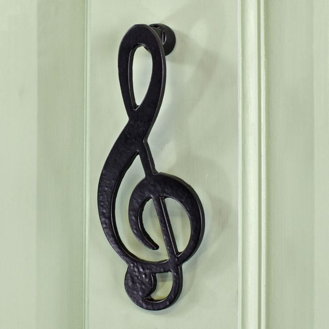 Hit the right note with the bright chrome door knocker in a treble clef design. Musicians and music lovers alike will love this uniquely designed and robustly cast solid brass door knocker. The striker stud and hinge plate are minimal in design, allowing fitting to doors with narrow central panels.
