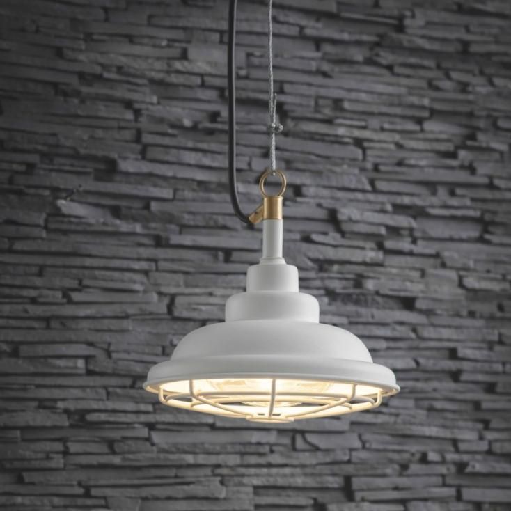Featuring classic nautical styling, this unique hanging light has been handcrafted from high-quality steel and finished in a white powder coat with brass accents. Complete with a matching ceiling rose for easy installation, this hanging light would look beautiful suspended above an entryway within a porch or patio setting. Complete with a cage-like frame, integral glass dome, and a built-in bulb holder for maximum downward light projection, this light would add both style and illumination to your property for many years to come.