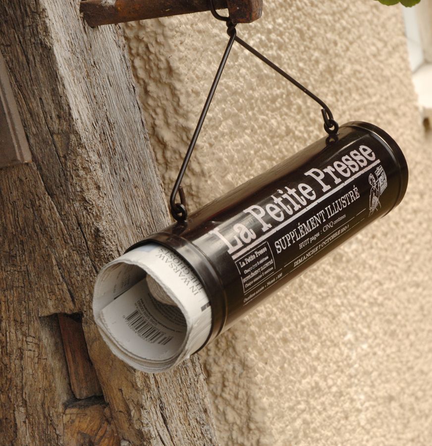 What a great idea this is, the Hanging Newspaper Holder - La Petite Presse, no more ripped up papers, your paperboy just rolls it up, and slides it into this really useful receptacle, will also keep your paper dry too.