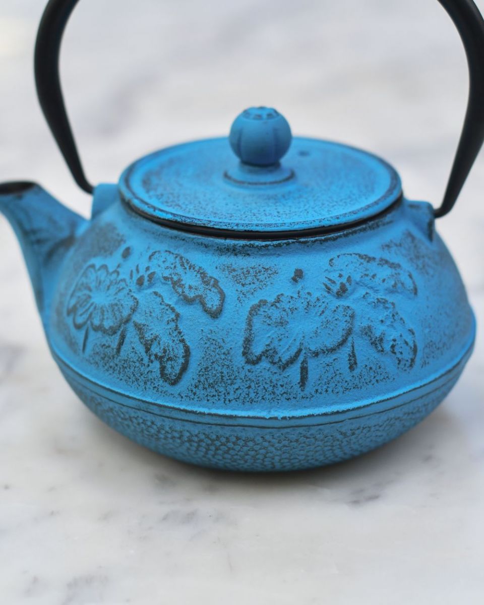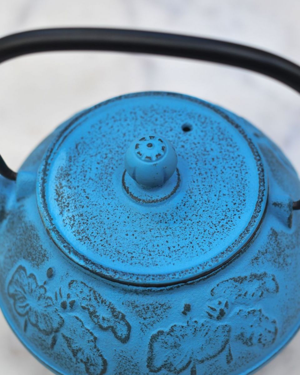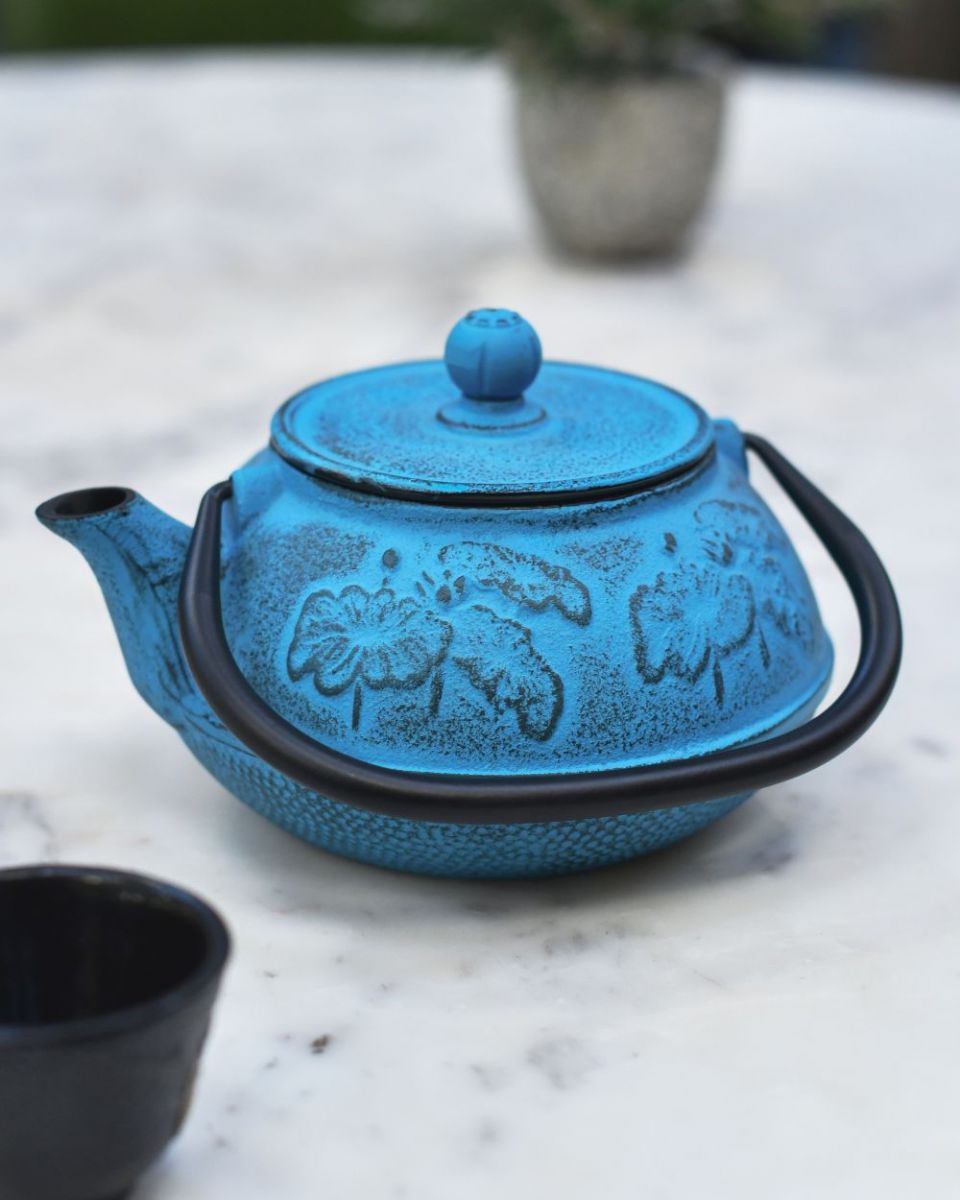 - "Oketo" Lotus Flower Blue and Black Cast Iron Japanese Style Teapot
