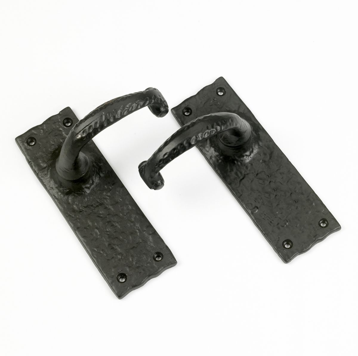 Taking inspiration from classic Medieval and Tudor style design, this door handle has been made from robust cast iron and finished in a sleek midnight black. Suitable for use on both interior and exterior doors, this door handle set is ideal for all period settings, especially barn conversions, renovations and refurbishments. Heavy and robust, this lever latch handle has been handmade in superior grade iron and then gently ‘hammered’ for a lovely textured surface reminiscent of its historical origins. Please note, this door handle comes in a pair.
