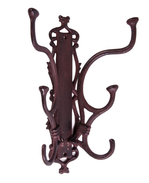 This six arm hook is wonderfully ornate with a beautifully detailed back plate and classical scroll work. It is available in a choice of elegant finishes and has ample room for all your scarves, jackets and hats. An elegant way to tidily store and organise your coats.