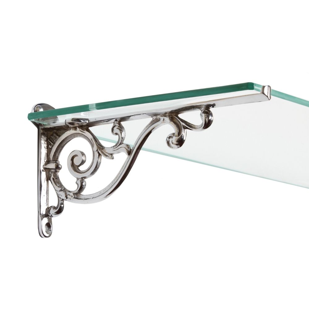 This bright chrome bracket is elegantly attractive, with wonderfully ornate scrolling. The bracket is beautifully designed and would be ideal for supporting both glass and wooden shelves.