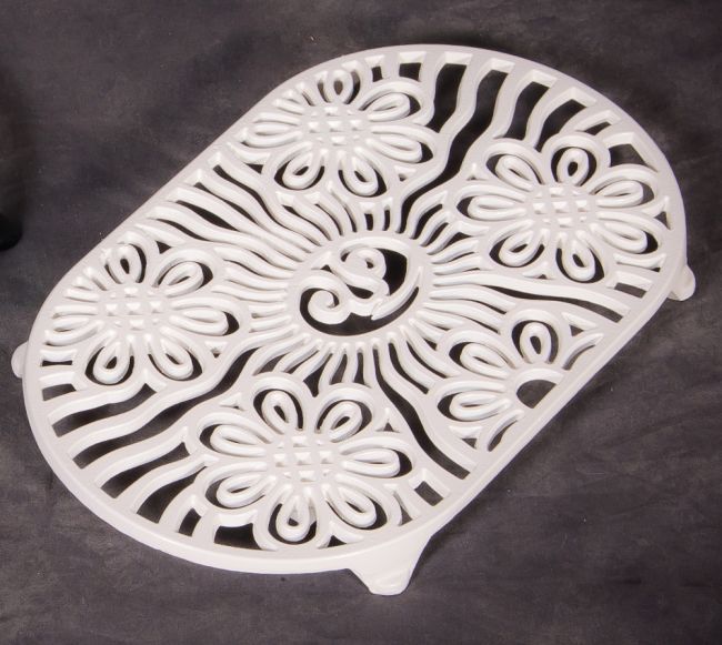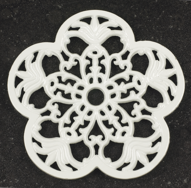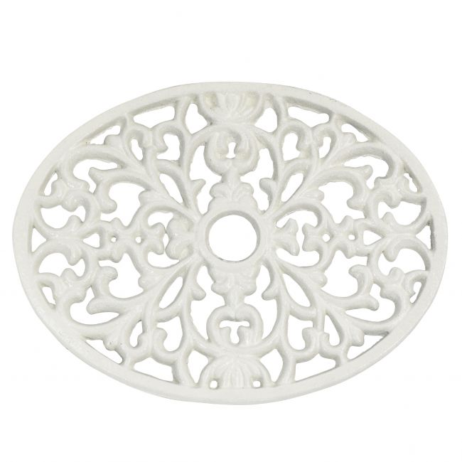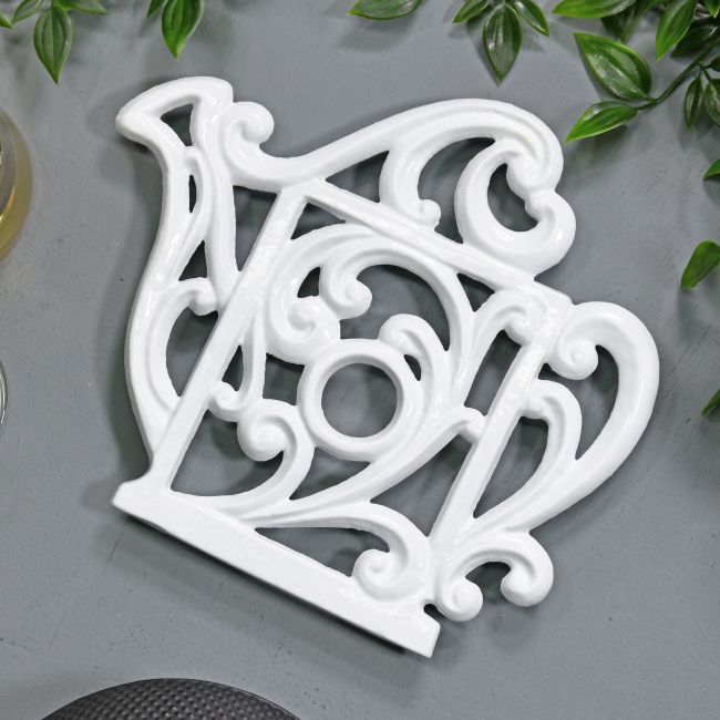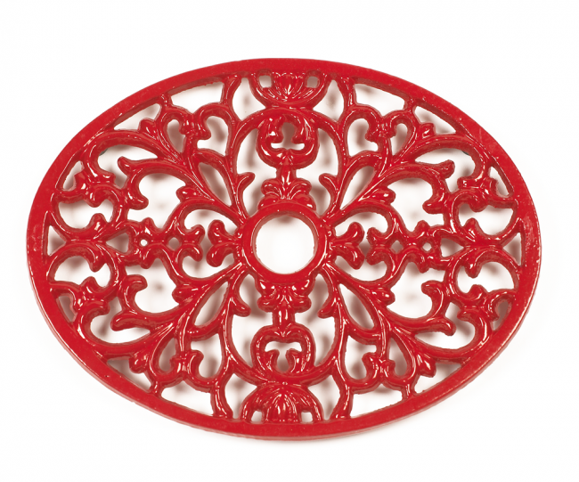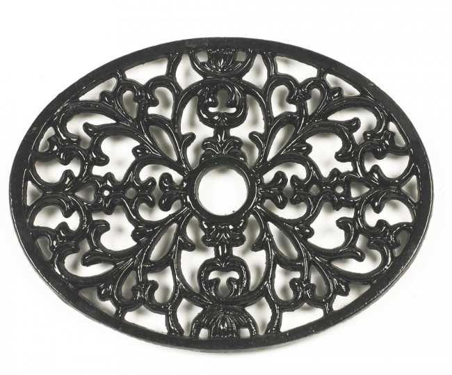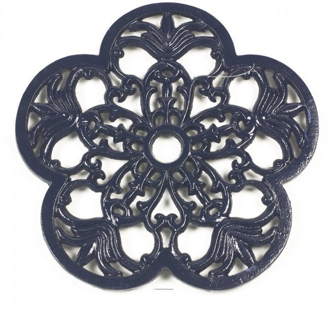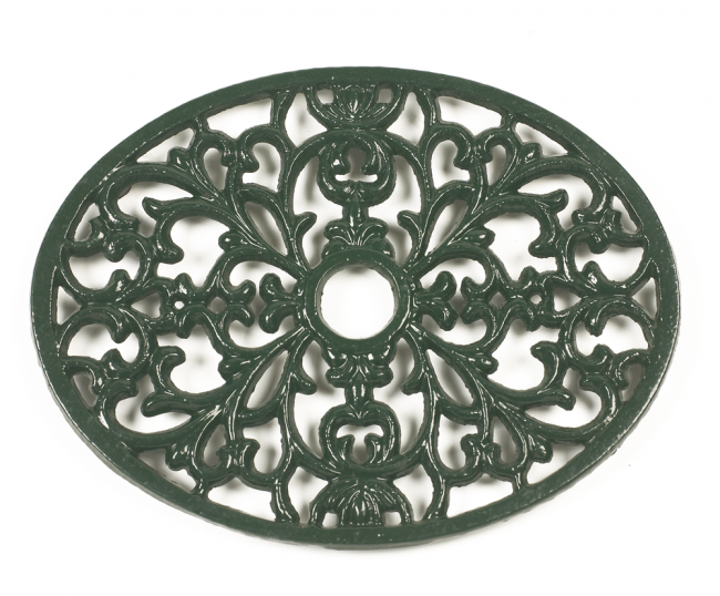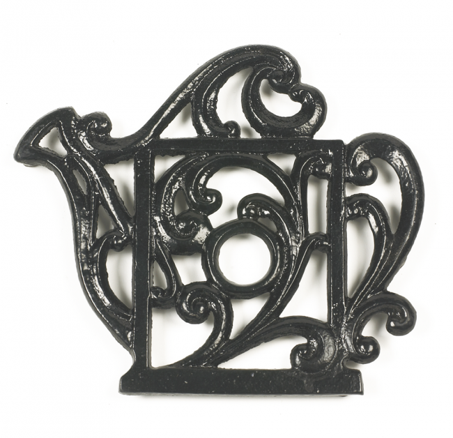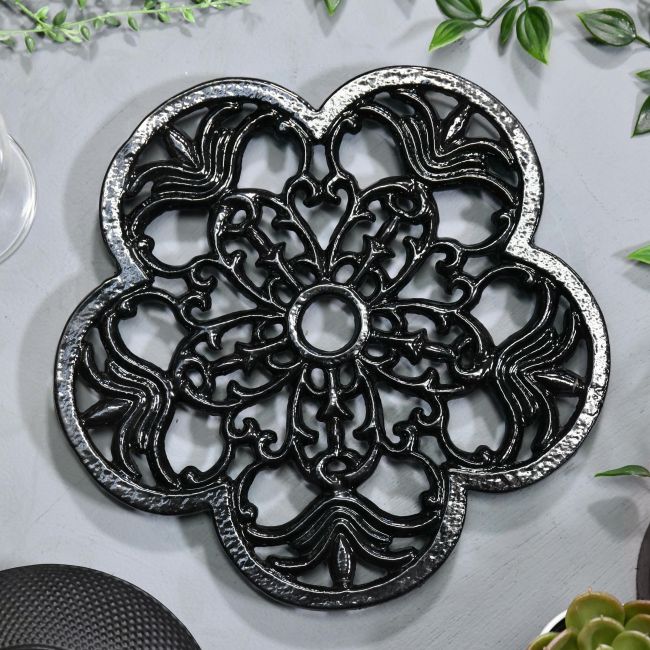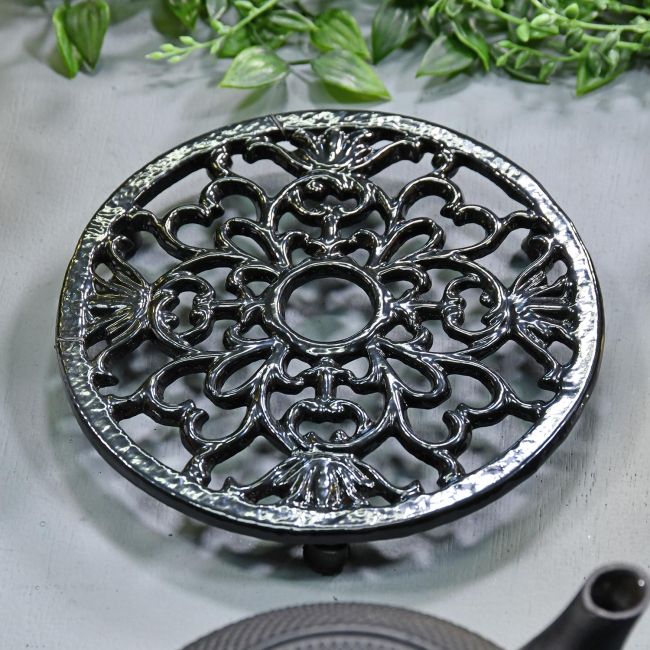 This elegant cast iron trivet is charmingly traditional in shape and design. The kitchen trivet is beautifully detailed and has been finished in a delightful midnight black. Resting of four small feet the pan stand helps to protect you work surfaces from hot cookware and trays.