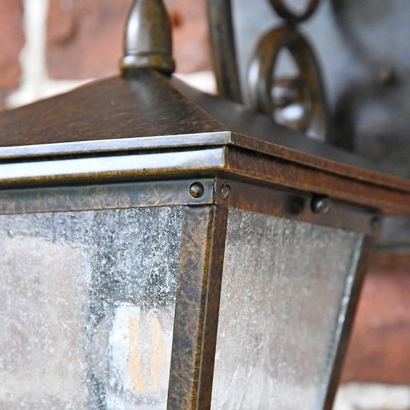 Inspired by Victorian design, this lantern takes on the shape of traditional hand-held lanterns seen used throughout history. Combining this historic legacy with a touch of country enchantment as seen in its scrolled bracketry and seeded glass panes, this piece is a truly unique way to add light to your outdoor space. Finished in a rich bronze, this lantern beautifully bridges the gap between vintage style and fairy-tale inspired design for a truly unique take on more classical offerings. This lantern comes complete with a hook top-mounted bracket and rectangular back plate in a matching finish, making it perfect for mounting above a door or entryway. Supplied with a built-in upper bulb holder for maximum downward light projection.