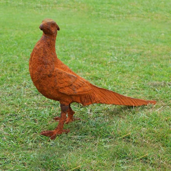 This regal pheasant sculpture has been cast in iron and perfectly embodies the character of the delightful bird. The garden statue is simply beautiful in design, adorned with feather like detailing and wonderfully rustic in finish.