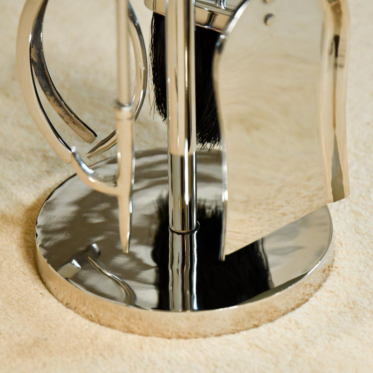 This companion set features all the necessary tools to keep your fireplace going through the winter months. Made from polished steel, each of the four finial tops and the centre pole feature urn like style detailing. Standing tall on a circular base stand, this contemporary companion set will look ideal in any interior décor style.