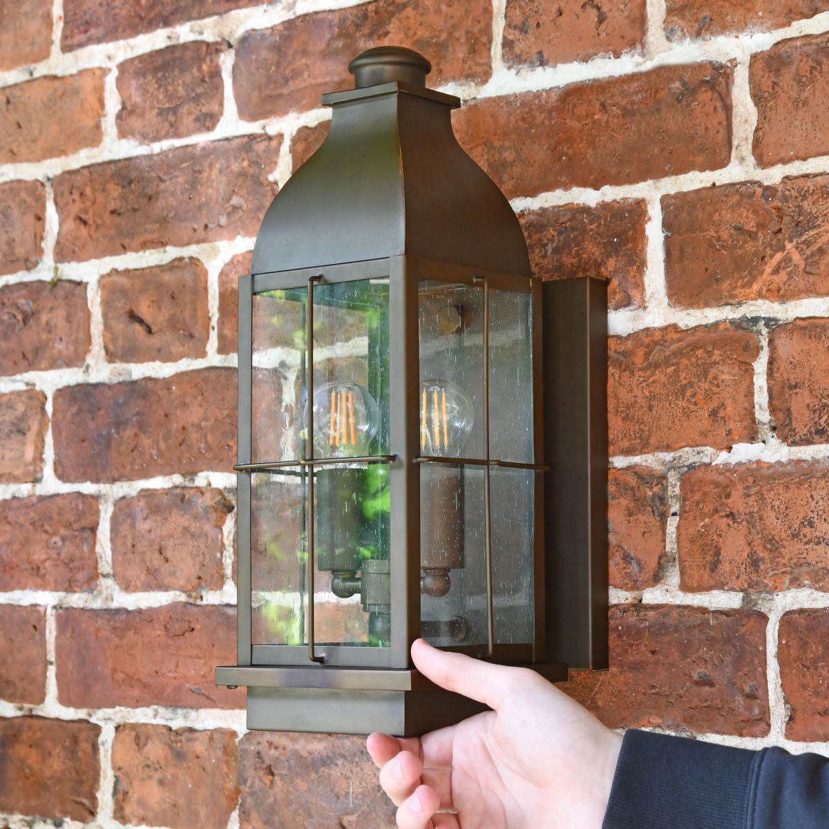 For those seeking a touch of coastal inspired design, this beautiful lantern is the perfect piece for the exterior of your home or property. Inspired by the hand-held gas lanterns seen used by lighthouse keepers throughout history, this lantern features seeded glass panes complete with cage-like adornments. Crafted from quality brass and finished in a rustic bronze, this lantern pays homage to its vintage cousins whilst providing a level of modern practicality with its three built-in bulb holders. Ideal for fitting beside a doorway, garage or on the columns of a porch, this lantern has been designed for maximum upward light projection.