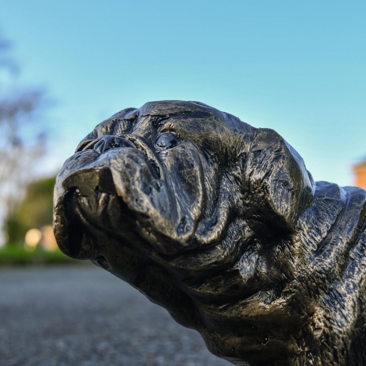 Created in China during the 16th Century, this flat faced breed of dog became a firm favourite of William of Orange which gained him the attention of aristocracy when he succeeded the English throne. A great companion dog full of personality, this breed has been given the name ‘multum in parvo’- a lot of dog in a small frame. Cast from aluminium and finished in an antique gold finish, this life sized sculpture is a must for breeders, owners and lovers of this fabulous breed. Fully detailed throughout from the tail to the wrinkles across the shoulders, this sculpture adorns all the exact qualities of a real pug, you just don’t have to clean up after him.