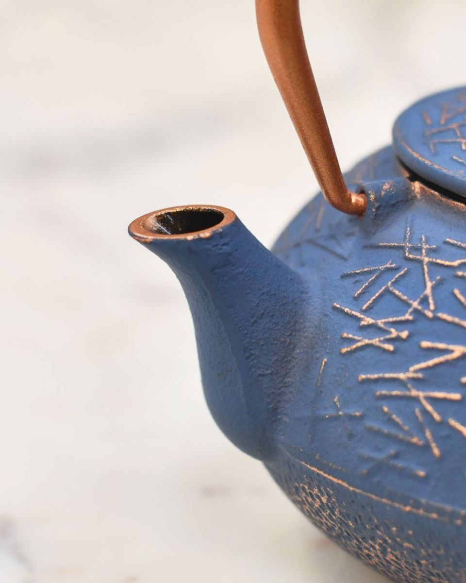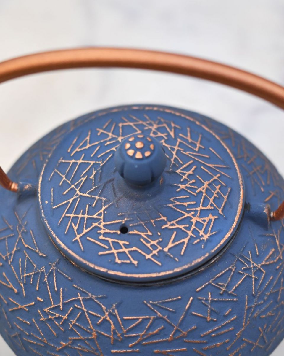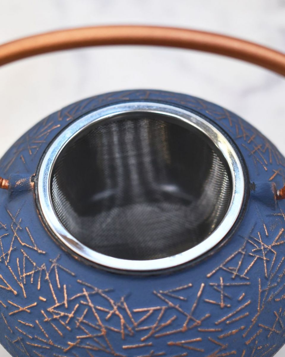 - "Qianping" Cast Iron Blue and Copper Finish Japanese Style Teapot