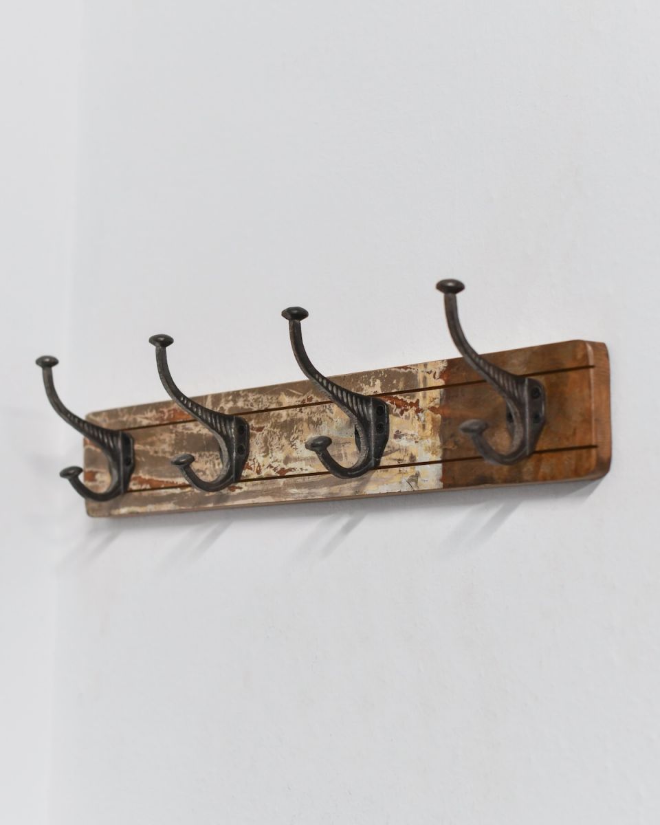 All of our coat hook racks have been carefully hand made using recycled wood, meaning each piece is unique and has their own individual look. Complete with four strong iron hooks which have naturally aged, leaving them with a lovely rustic finish.