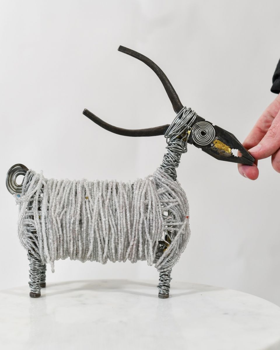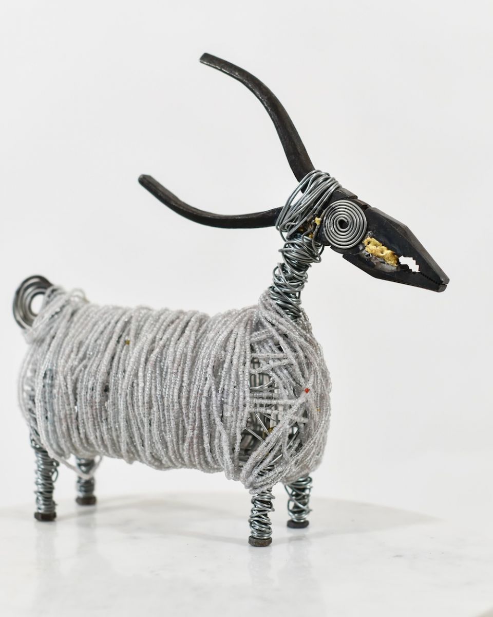 Our Recycled Metal Beaded Ram Sculpture has been cleverly reimagined from scrap metal pieces into a charming sculpture that would liven up any workspace or shelf. A unique gift that has the added benefit of saving scrap fixings from landfill!