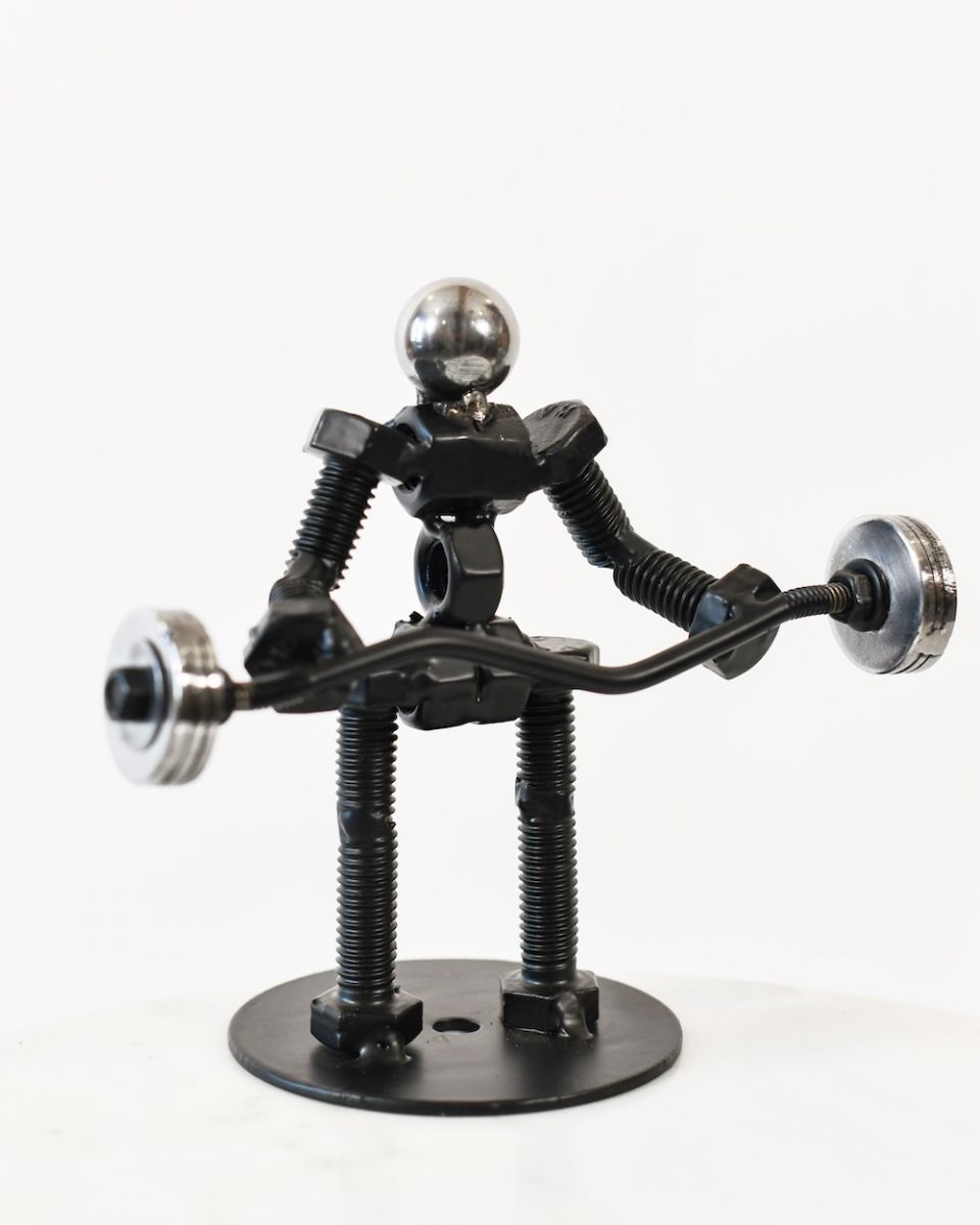 Our Recycled Metal Curl Bar Sculpture is a unique and characterful addition to any home. Skillfully crafted from scrap metal pieces to save them from landfill, this is a no-guilt gift that would delight any gym goer!