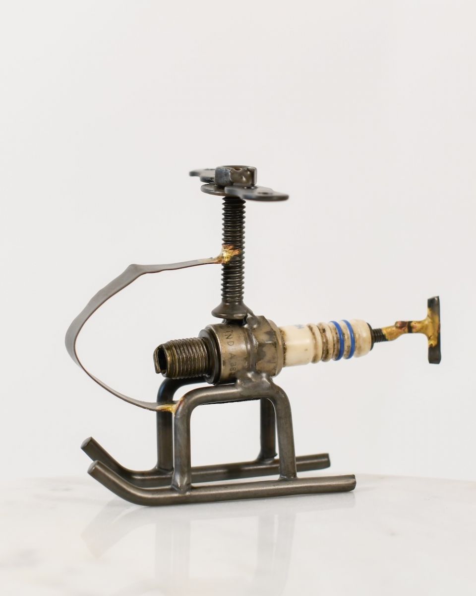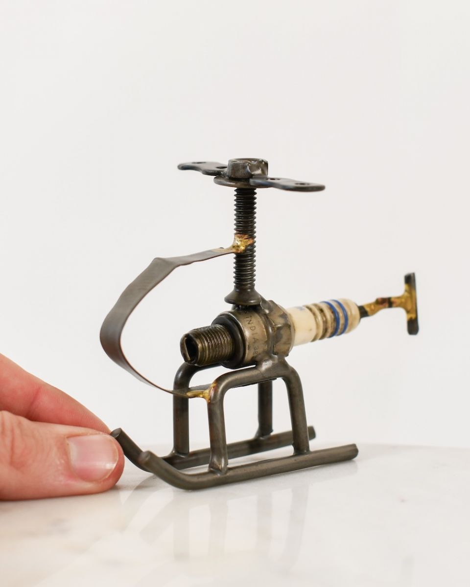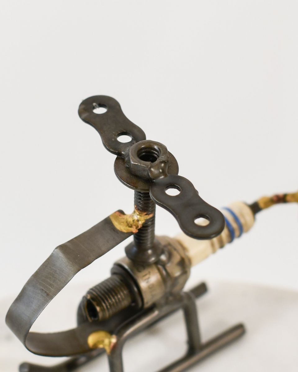 Our Recycled Metal Helicopter Sculpture has been cleverly reimagined from scrap metal pieces into a charming sculpture that would liven up any workspace or shelf. A thoughtful gift that has the added benefit of saving scrap fixings from landfill!