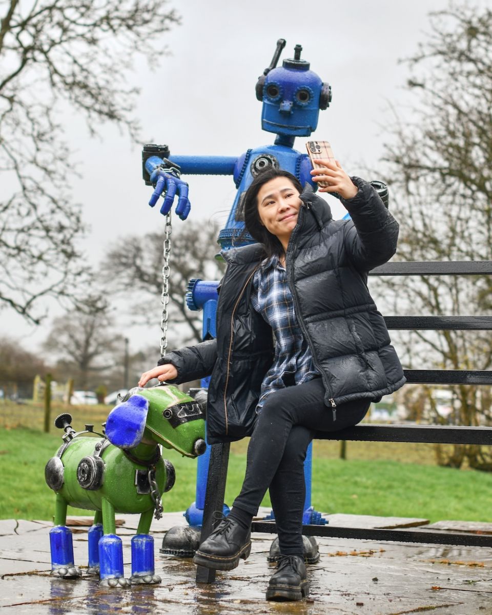 The quirkiest bench you ever did see; meet ‘Moto’ and his little dog ‘Gear’! A perfect example of upcycling, this bench and sculpture have been crafted entirely from recycled metals. Featuring gears, bicycle chains, and cogs amongst other unused materials, this bench is a true one-of-a-kind piece. The bench has been crafted from robust steel and finished in a sleek black powder-coat to ensure longevity, and to let the robot sculptures shine. This design would look beautiful placed within a large garden setting or in a public space for that all-important selfie moment!