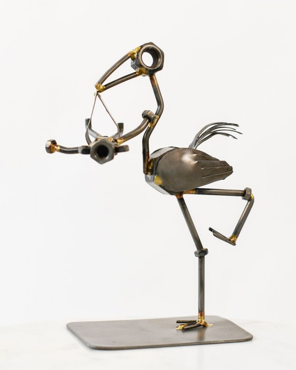'Delivery' has been cleverly reimagined from scrap metal pieces into a charming sculpture that would make the perfect baby shower gift. A thoughtful gift that has the added benefit of saving scrap fixings from landfill!